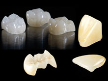 Material of Choice varies based on your existing oral condition and your Dentist's preferences. The choices are EmpressCAD®, VitaCAD®, LAVA Ultimate®, etc. Basically, they can be made of ultra high strength dental ceramic, dental composite, or a composite mixture of dental composite and zirconia fillaments. In other words , your dentist has the flexibility in choosing the best material for you.